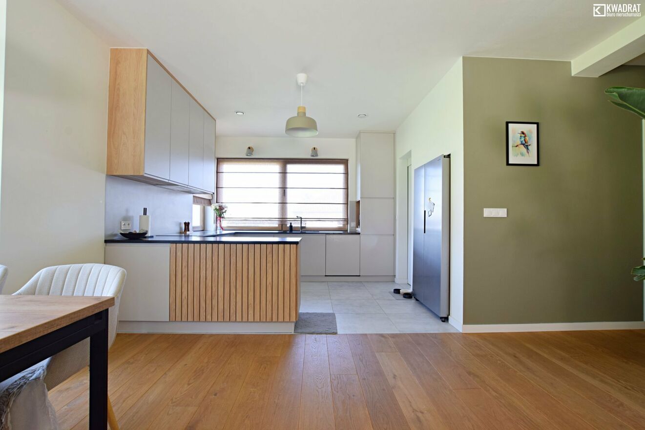 - Jasny, przestronny salon z aneksem kuchennym (41 m2) i wyjściem na taras